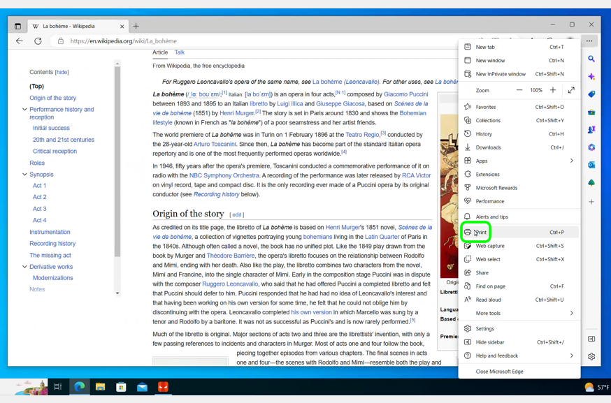 Sie erhalten eine Vorschau des zu druckenden Dokuments und können den lokalen physischen Drucker auswählen, auf dem Sie den Druckvorgang starten möchten.