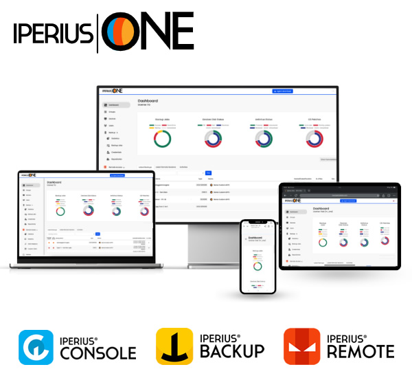 Die All-in-One-RMM-Plattform, die Iperius Backup, Iperius Console und Iperius Remote in einer einzigen professionellen Lösung vereint. Verwalten Sie Cloud- und On-Premises-Backups, überwachen Sie den Systemzustand, steuern Sie Sicherheitspatches und greifen Sie per Remotezugriff auf Geräte zu – alles über ein zentrales Web-Dashboard.